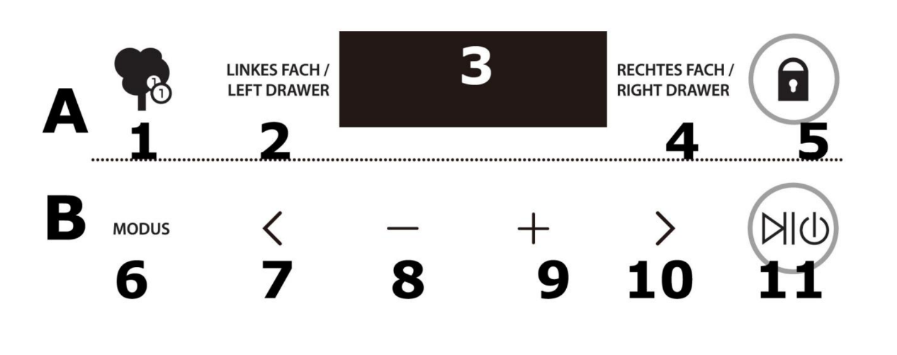Bước 2: Nhấn phím Linkes Fach/Left Drawer (phím 2) để cài đặt nhiệt độ (1-12) của ngăn bên trái