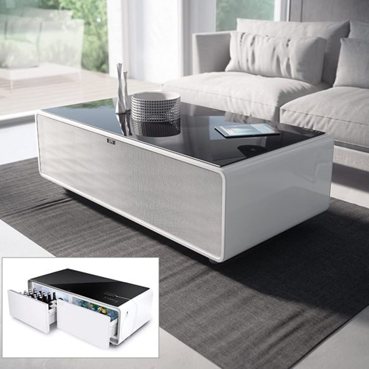 Gồm 2 ngăn kéo làm mát như một chiếc tủ lạnh mini bạn có thể đựng kha khá đồ với dung tích lên đến 130l, nhiệt độ 2 ngăn này luôn duy trì từ 1-12 °C, thật tuyệt vời khi được thưởng thức những bản nhạc yêu thích cùng đồ ăn và đồ uống mát lạnh đúng không nào. 2 khoang mát này còn được bố trí dàn led sáng tự nhiên giúp bạn nhận diện đồ khi ánh sáng mờ ảo của buổi tiệc, ngoài ra bàn còn có chức năng cảnh báo thông minh bạn bản mở ngăn kéo quá lâu, nó sẽ phát ra âm thanh để báo cho bạn, tiết kiệm kha khá điện năng cho bạn đấy.